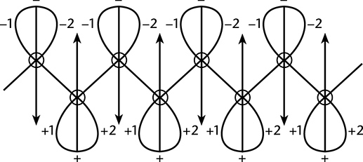 (-2) of the Negative branch is balanced by (+1) of the Positive branch and (-1) is released.